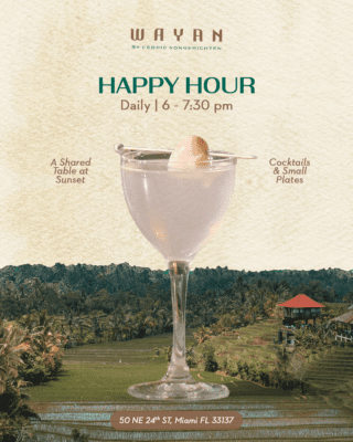 Wayan arrives in the heart of Wynwood, Miami’s creative epicenter—where bold murals, street art, and an ever-evolving cultural energy set the tone. Following the growth of its flagship in NYC, a year-round home in Aspen, and a seasonal summer presence in East Hampton, the Indonesian-French restaurant—led by husband-and-wife team Ochi and Cedric Vongerichten—found a natural next home in Miami. Known for vibrant Southeast Asian flavors layered with French technique, Wayan offers bold, shareable dishes alongside playful, tropical-leaning cocktails designed for long nights and easy conversation. The Wynwood opening marks Wayan’s first Miami outpost: a New York restaurant group stepping into Wynwood with the same spirit—relaxed, expressive, and meant to be shared.