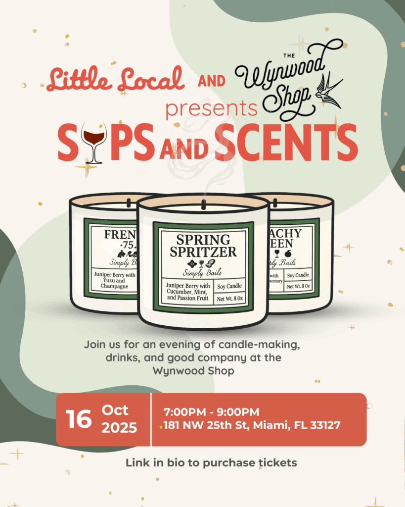Welcome to Little Local’s Sips & Scents Candle-Making Class, featuring Simply Bails Co. at Wynwood Shop!